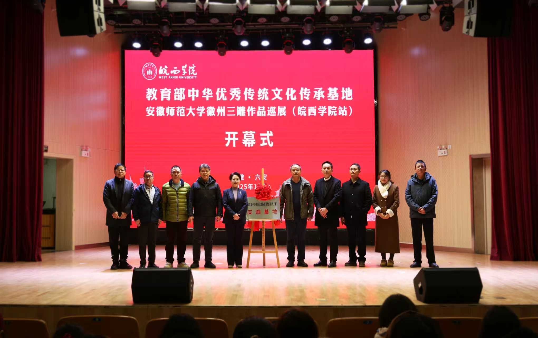2025年11月21日上午,安徽师范大学教育部中华优秀传统文化传承基地(徽州三雕)实践基地揭牌仪式暨作品巡展在在皖西学院艺术学院隆重开幕。皖西学院党委副书记胡林娜、皖西学院艺术学院党委副书记(主持党委工作)胡道圣、皖西学院艺术学院党委副书记邓启亮、安徽师范大学美术学院副院长王屹、绘画系主任周群、副主任杨涛等以及皖西学院艺术学院师生代表出席开幕式。开幕式由皖西学院艺术学院院长李顺庆主持。