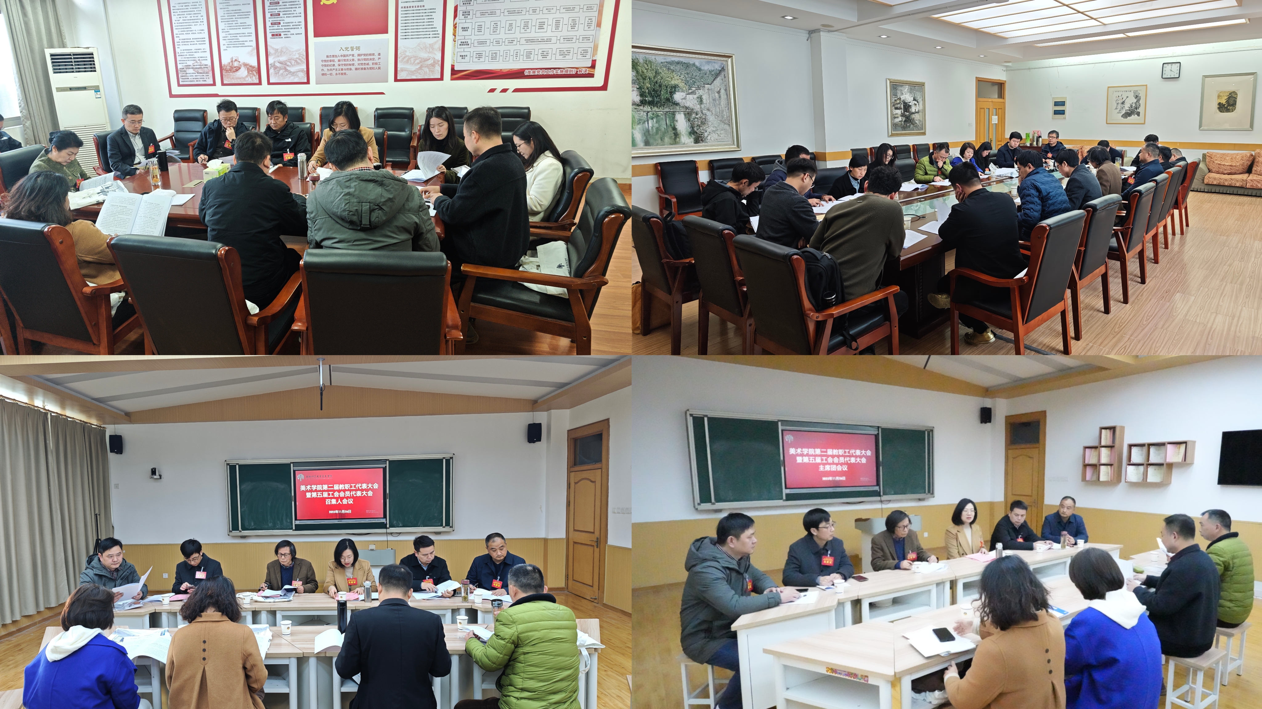 开幕式结束后,第二届教代会暨第五届工代会召开了第一次全体会议。根据大会议程,学院院长尚可作了题为《继往开来 共绘蓝图奋力谱写学院高质量发展新篇章》的报告,从党的建设、教学科研、人才培养、队伍建设、社会服务等方面详细介绍了学院过去五年的工作成效。尚可提出未来五年要以“学科升级、专业优化、人才提质、服务赋能”为核心,构建“美术学+”“设计学+”交叉融合的学科专业发展新格局,系统阐述了发展思路与六大重点工作,为学院未来发展勾勒了全新愿景。刘曼玉同志代表上一届教代会、工会作工作报告,她以《执温暖之笔 绘和美画卷为加快建设高水平美术学院贡献工会智慧和力量》为题,从推进民主管理、师德师风建设、健全服务保障、繁荣文体活动、夯实自身建设五个方面总结回顾了过去五年的工作,并对下一阶段的工作提出建议与展望。最后,王屹副院长向大会作了学院财务工作报告。