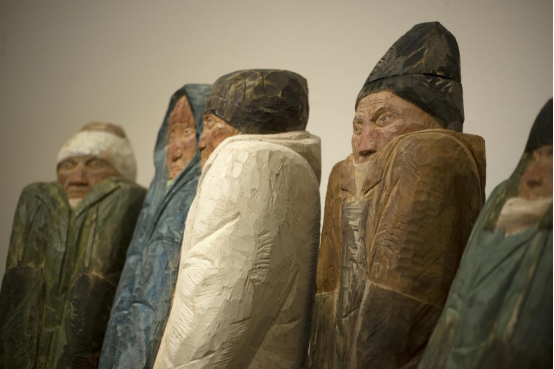 谢鑫《凛冬之获》局部,香樟木,110×122×187cm,2024年