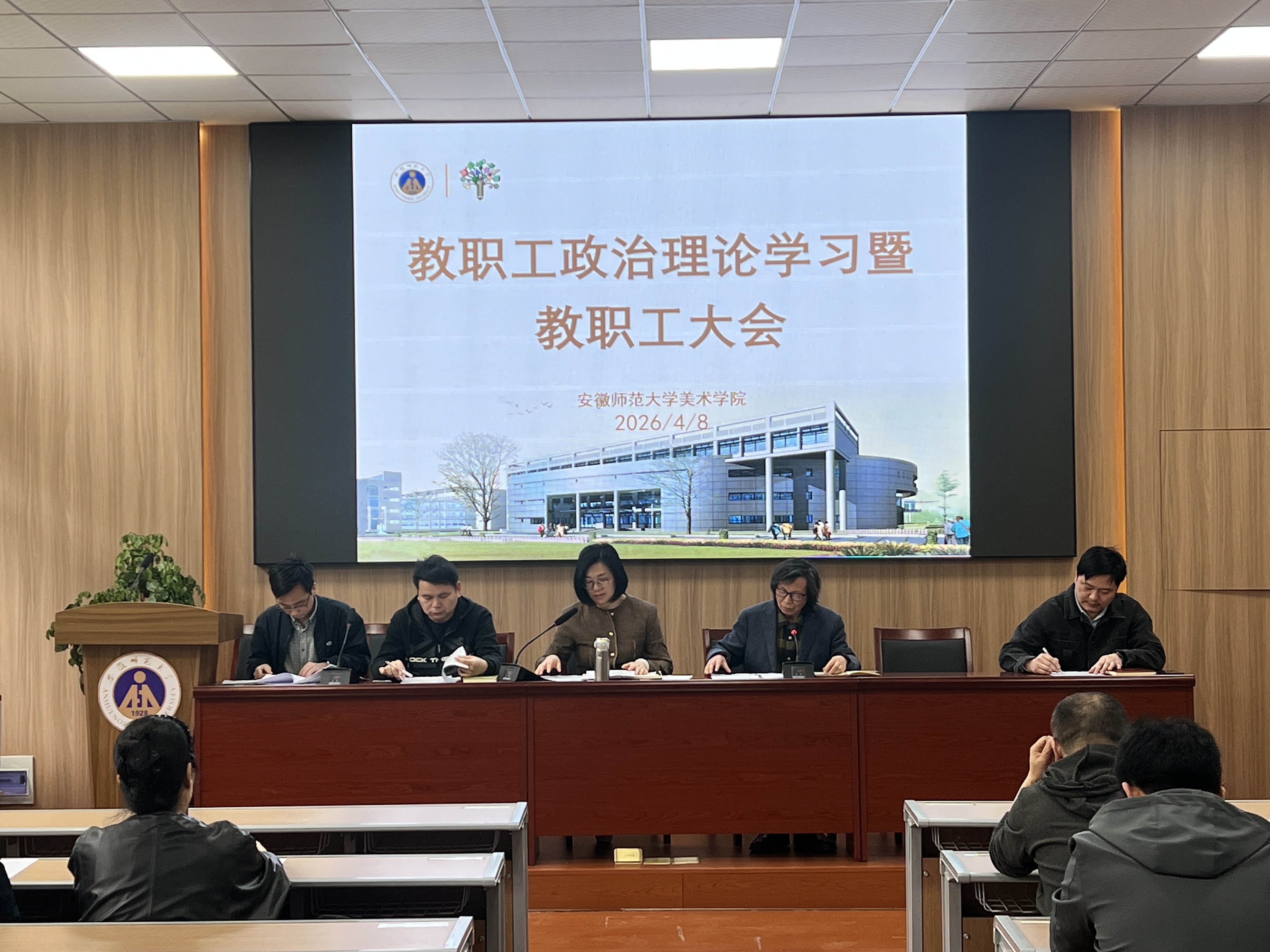 4月8日下午,美术学院在A107报告厅召开教职工政治理论学习暨教职工大会,全体教职工参会。会议由学院党委书记朱琳主持。