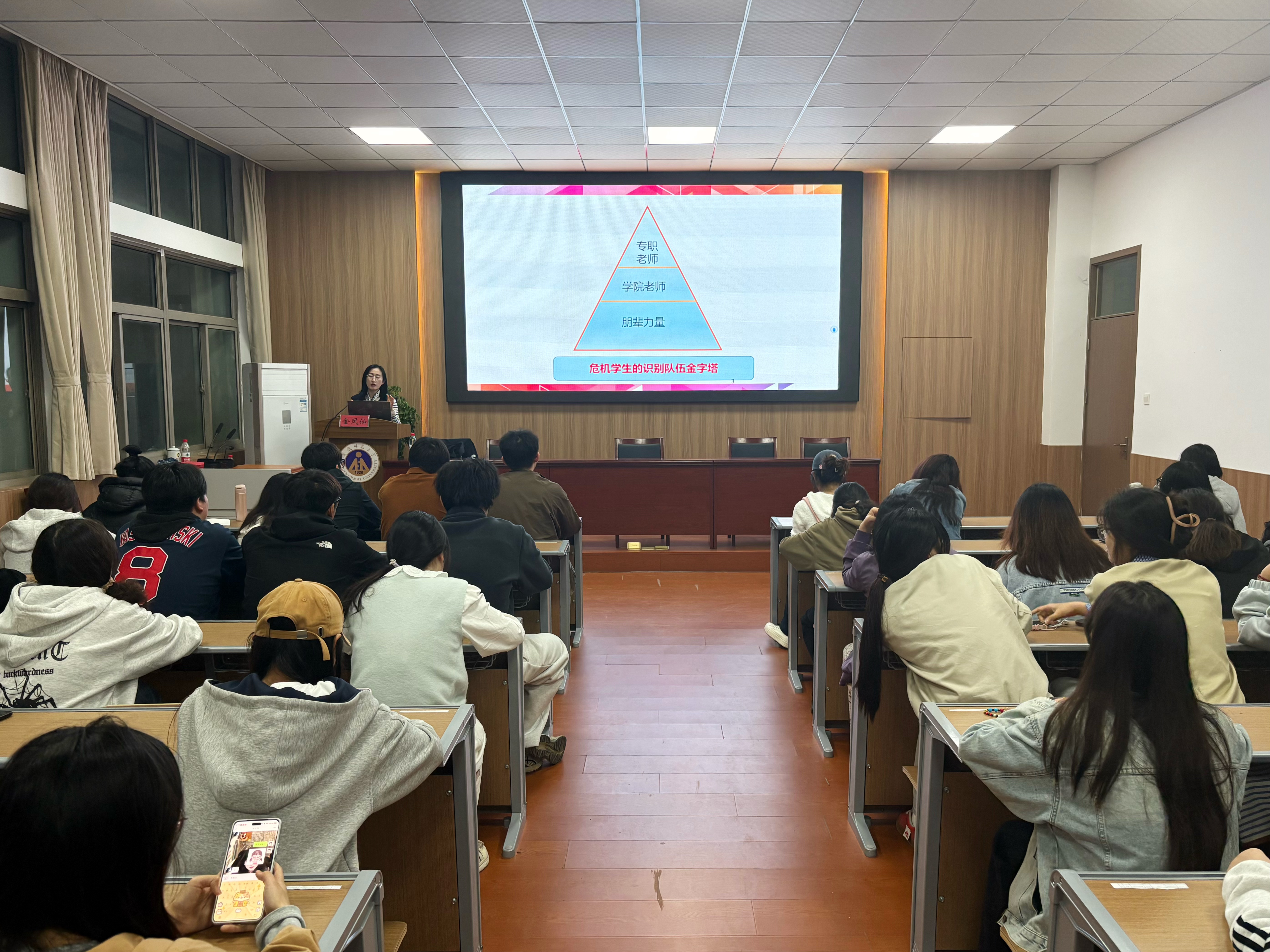 培训环节,金凤仙以《“危机”中的你我Ta》为题,向寝室长介绍了心理问题的识别及应对方式,普及了心理健康知识,并结合大学生寝室生活实际,讲解心理调适与人际沟通技巧,化解寝室矛盾、营造温暖氛围中的重要职责,推动心理健康教育落地落实。