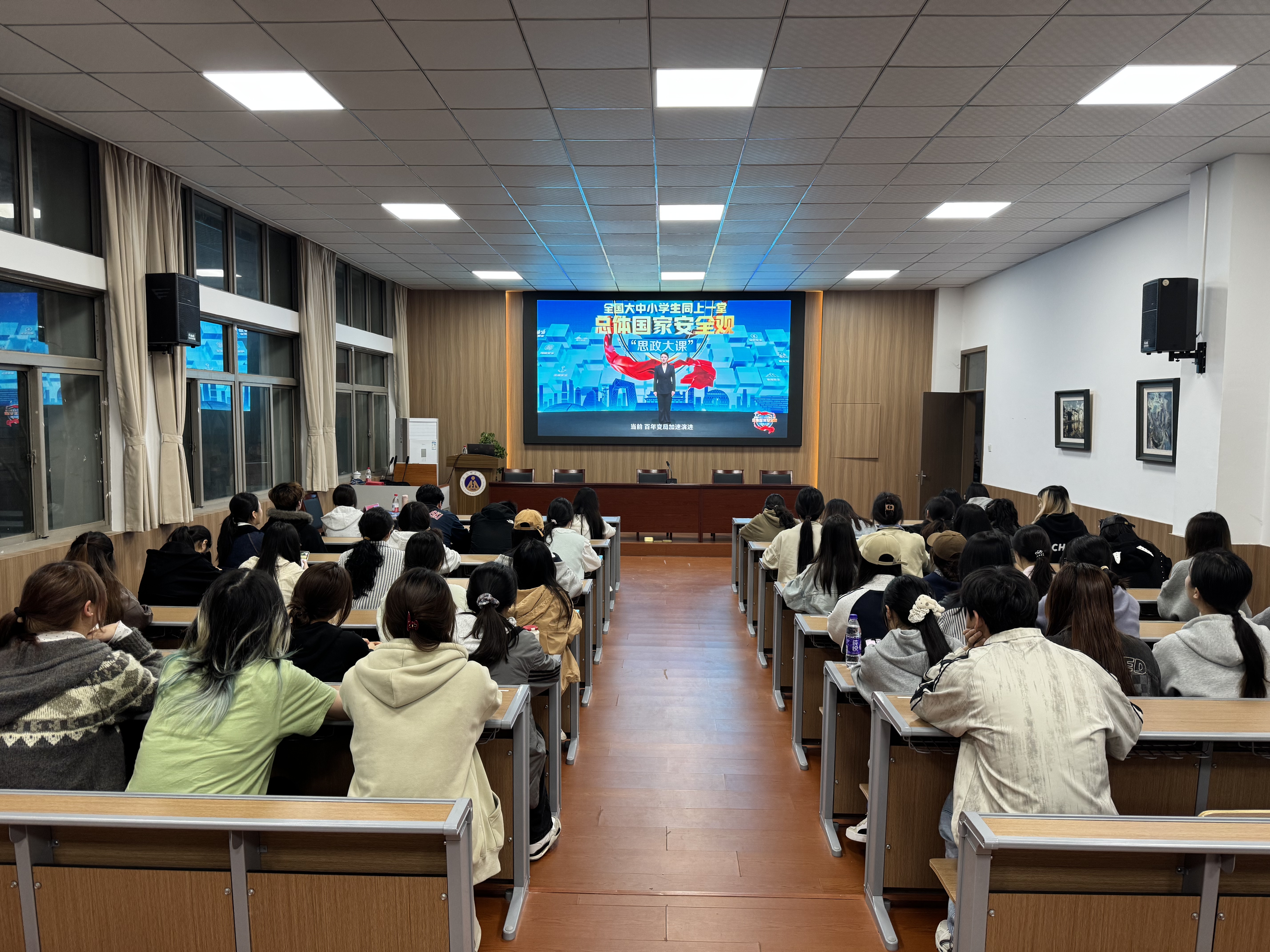 会前,学院组织全体参会学生集中观看总体国家安全观 “思政大课”,引导学生深刻领会国家安全内涵,增强维护国家安全的思想自觉与行动自觉。