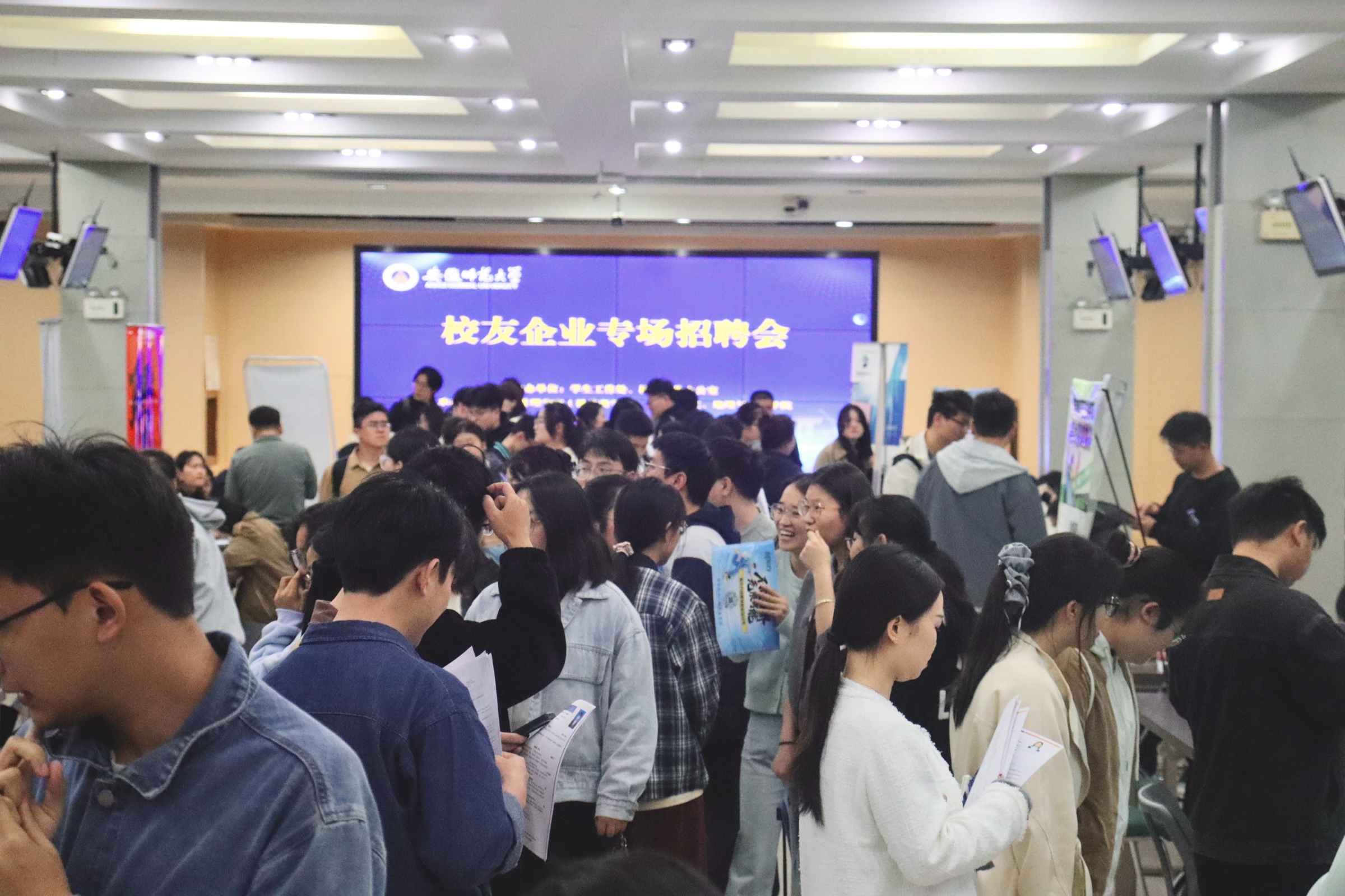 为更好地促进毕业生高质量充分就业,搭建校友企业与毕业生互动平台,4月22日下午,在学生工作处、校友工作办公室指导下,美术学院联合经济管理学院、地理与旅游学院在花津校区大学生活动中心二楼就业招聘大厅举办校友企业专场招聘会,学校各学院毕业生积极参会。