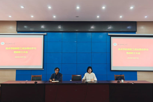 10月17日上午,美术学院在会议中心第二会议室召开教职工政治理论学习暨教职工大会。会议由党委书记朱琳主持,全体教职工参加。