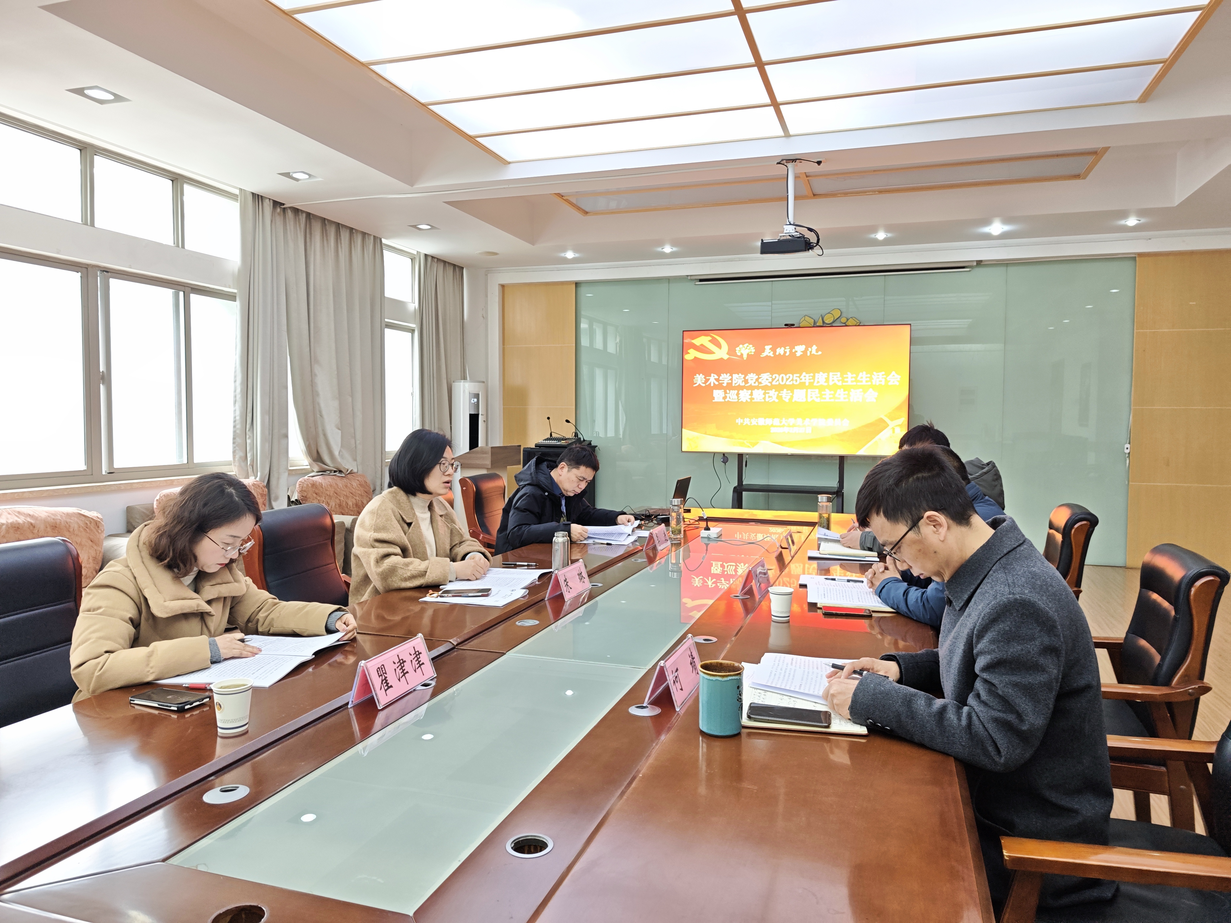 2月27日,美术学院党委领导班子召开2025年度民主生活会暨巡察整改专题民主生活会。美术学院党员领导干部参加会议,党委巡察办公室副主任瞿津津到会指导。会议由美院党委书记朱琳主持。