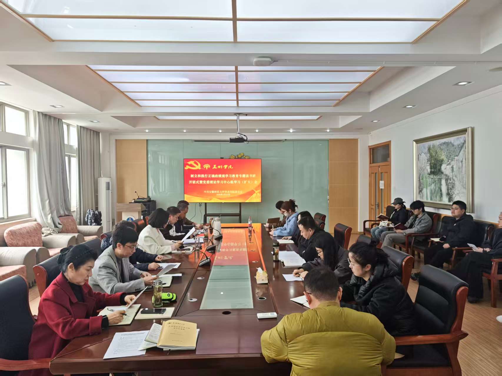 3月23日下午,美术学院树立和践行正确政绩观学习教育专题读书班开班式暨党委理论学习中心组学习(扩大)会在学院三楼会议室举行。学院党委委员、纪委委员、辅导员、各党支部书记、各科室秘书参加会议。院长尚可列席会议,会议由党委书记朱琳主持。