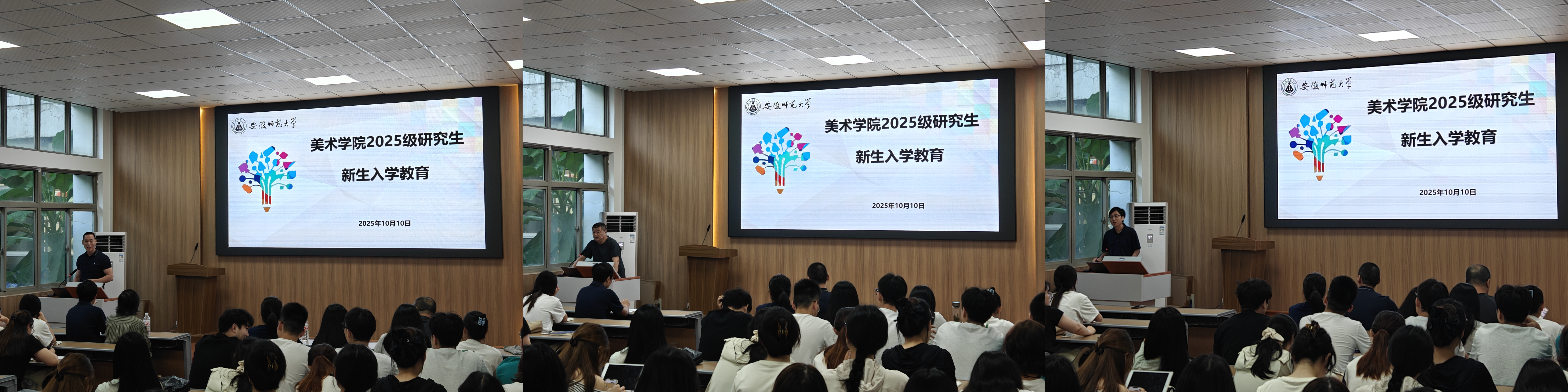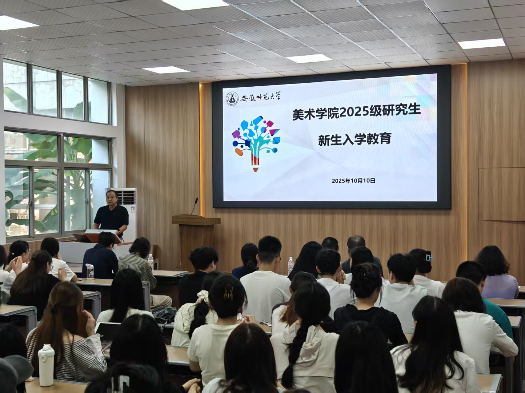 为帮助 2025 级研究生新生快速适应校园生活、明确学术研究方向,筑牢成长成才根基。10月10日下午,美术学院在学院一楼报告厅召开2025 级研究生新生入学教育会。院长尚可、艺术学点长陈克义、美术与书法点长叶勇、设计点长何靖、导师代表李颖出席会议,2025 级全体研究生新生参会。会议由副院长王屹主持。