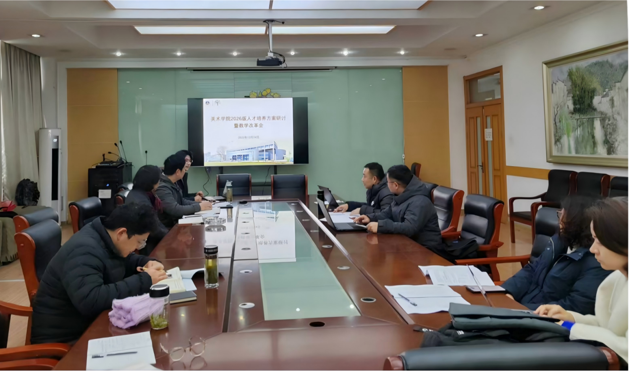 2025年12月24日下午,美术学院在学院会议室召开2026版人才培养方案研讨暨教学改革会。美术学院院长尚可、教学副院长王春雷,各系主任及骨干教师代表出席会议,共同探讨美术与设计教育发展方向及人才培养模式创新,会议由王春雷主持。