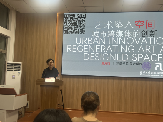 2025年10月10日晚20:00,一场聚焦前沿学术与创新实践的思想盛宴在美术学院A107教室精彩上演。清华大学未来实验室首席研究员、感知与意识研究中心主任,同时也是清华大学美术学院与建筑学院博士生导师、哈佛大学设计学博士的唐克扬教授,在此举办了题为《艺术坠入空间:城市媒体的创新》的专题学术讲座。我院师生共计120余人踊跃参与,现场座无虚席,会议由副院长何靖主持。